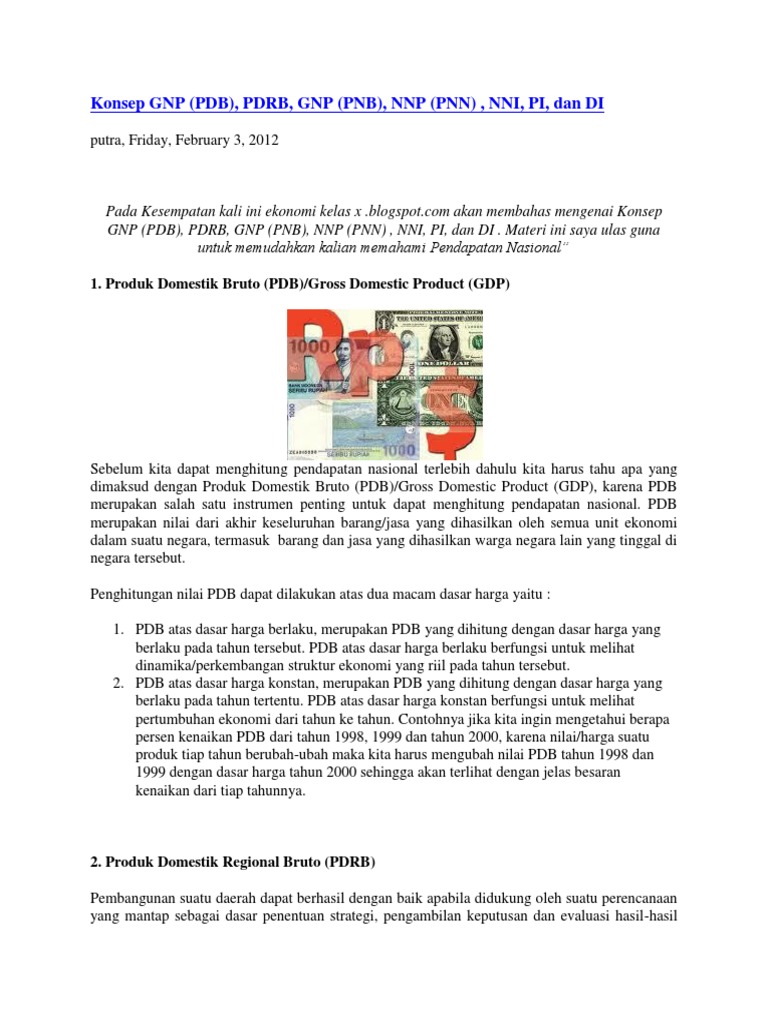 Konsep Gnp (Pdb), Pdrb, Gnp (Pnb), Nnp (Pnn) , Nni, Pi, Dan Di