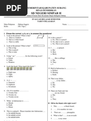 Latihan Soal PTS Bahasa Inggris Semester Satu Kelas 3 (Tiga) SD …
