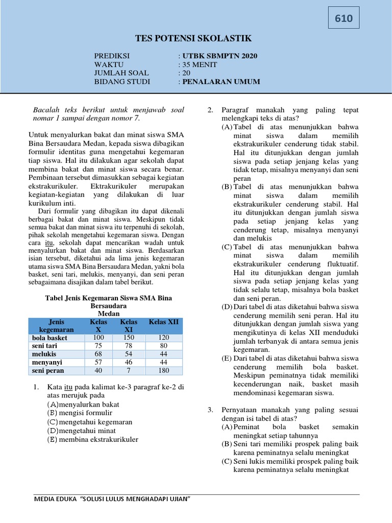 Prediksi UTBK TPS 2020 - Penalaran Umum FIX