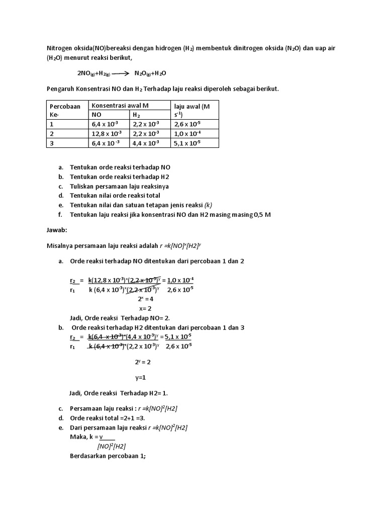 Contoh Soal Mengenai Laju Reaksi Dan Orde Reaksi - Cute766