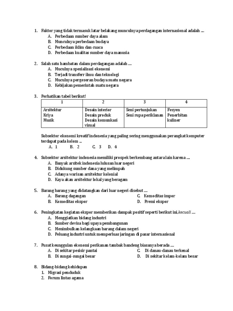 Contoh Soal Pilihan Ganda Perdagangan Internasional Dan Jawabannya …