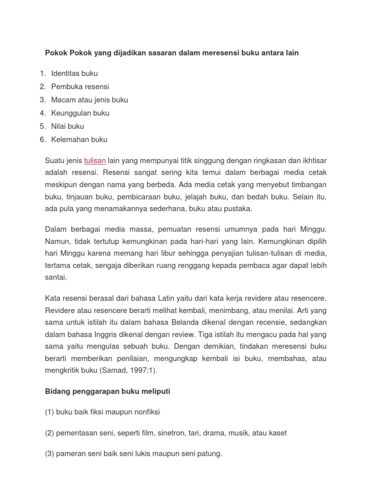 Pokok Pokok Yang Dijadikan Sasaran Dalam Meresensi Buku …