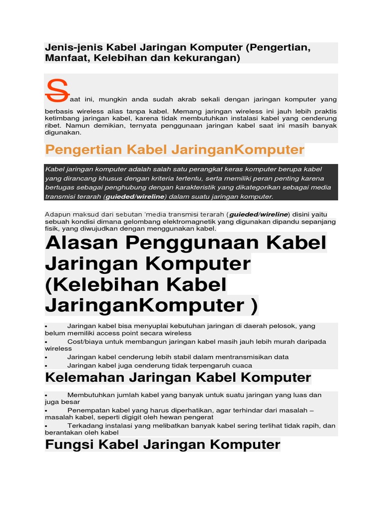 Jenis-Jenis Kabel Jaringan Pada Komputer Beserta Kelebihan dan Kekurangannya - Dunia Pemrogramanque