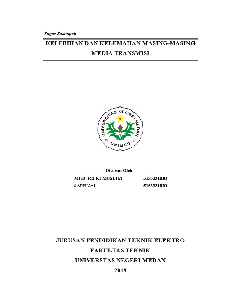 Kelebihan Dan Kelemahan Masing-Masing Media Transmisi: Tugas Kelompok