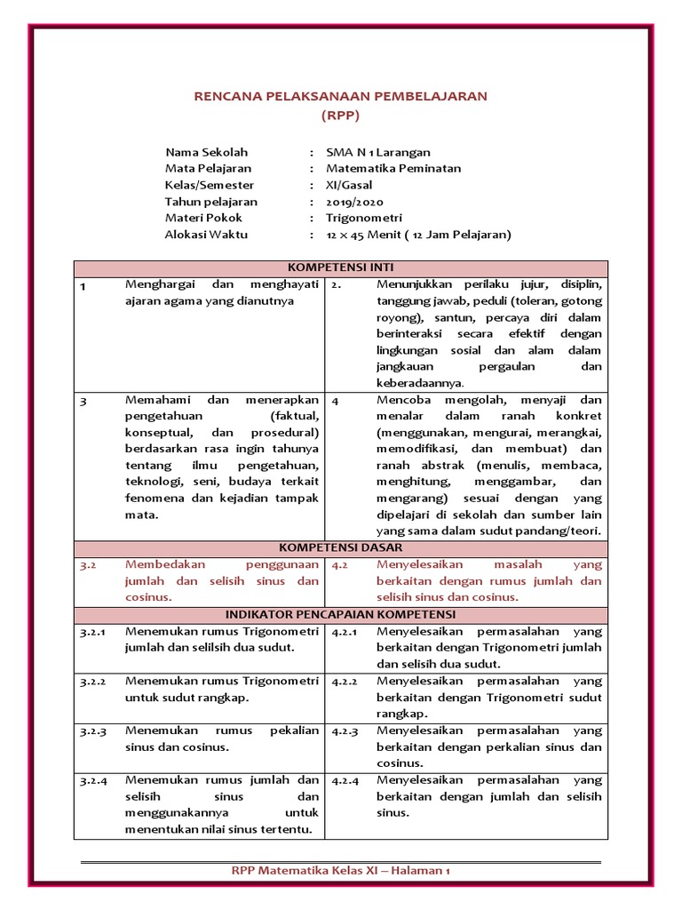 RPP 1 LEMBAR MATEMATIKA WAJIB KELAS 11 SMA KURIKULUM 2013 REVISI 2020 - Kherysuryawan.id