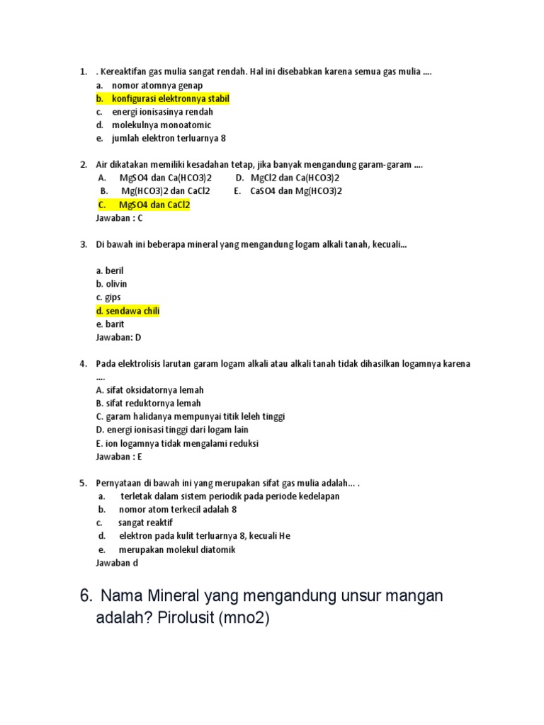 6. Nama Mineral yang mengandung unsur mangan adalah …