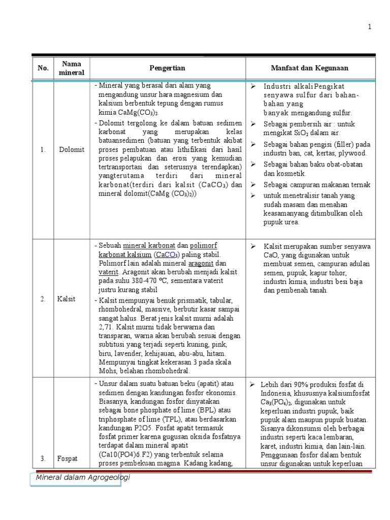2 nama batuan mineral yg mengandung magnesium apa ajaa? - Brainly …