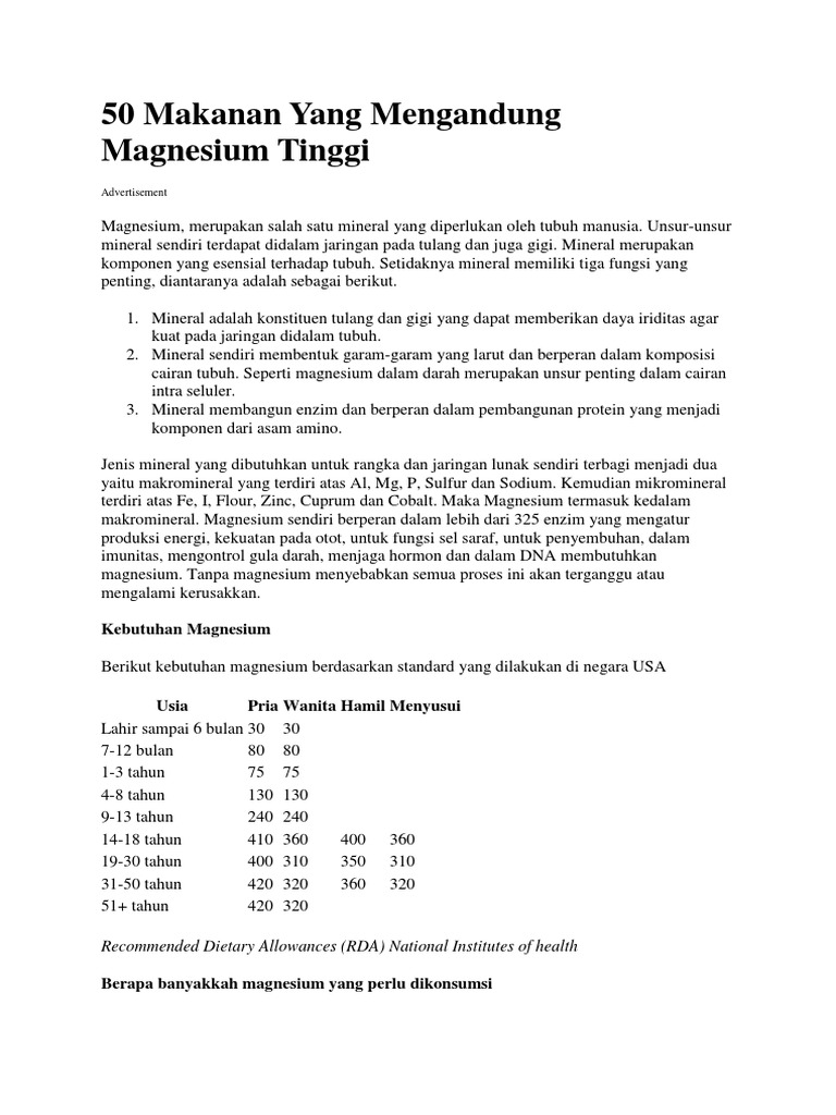 50 Makanan Yang Mengandung Magnesium Tinggi #Dalam Tabel - HaloSehat