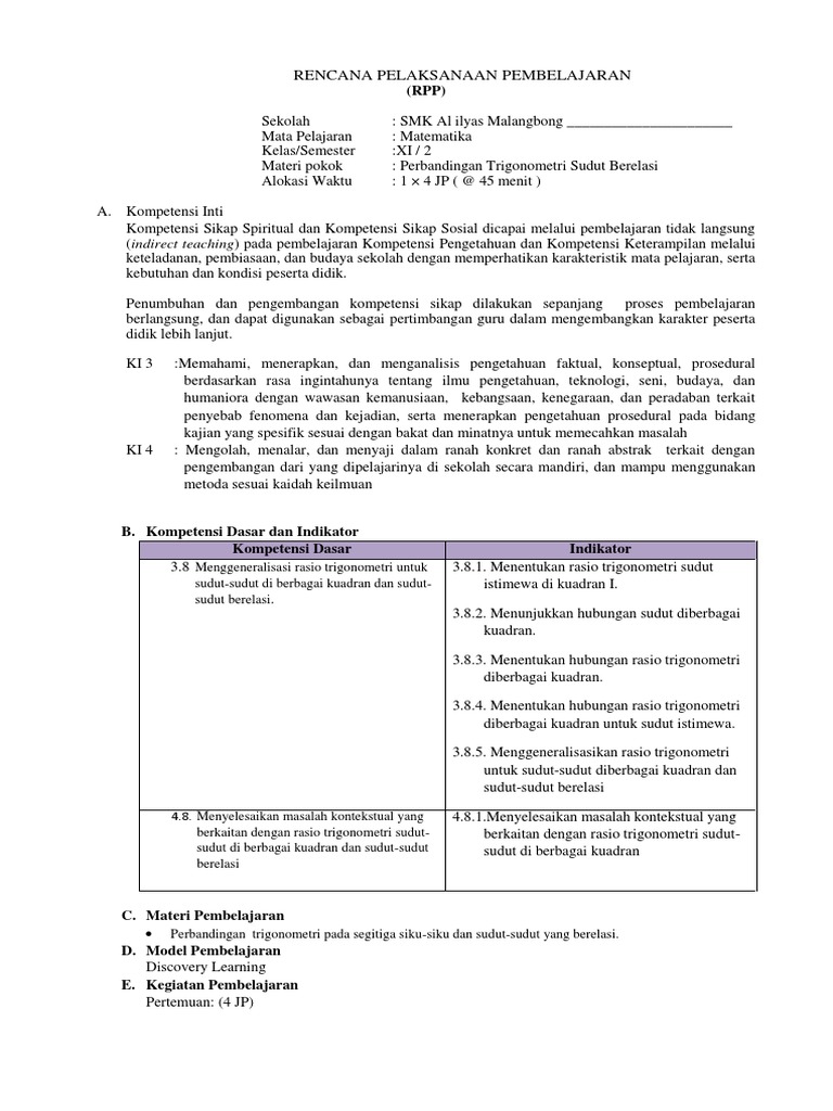 RPP 8 - Perbandingan Trigonometri Sudut Yang Berelasi