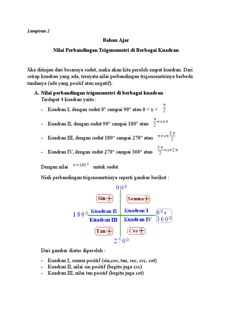Bahan Ajar Nilai Perbandingan Trigonometri Di Berbagai Kuadran
