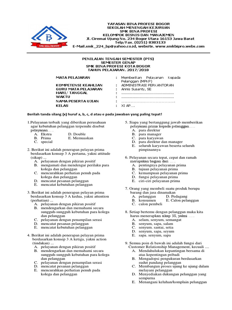 SOAL EVALUASI SMK KELAS XI dan JAWABAN | Soerya suryadi - Academia.edu