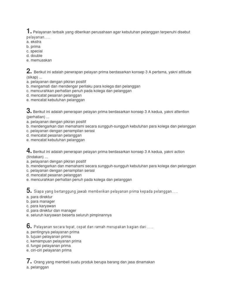 Bank Soal Memberikan Pelayanan Kepada Pelanggan