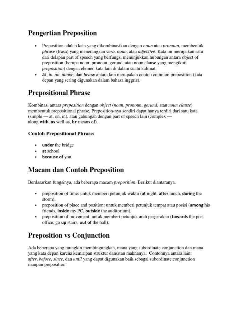 Pengertian Preposition