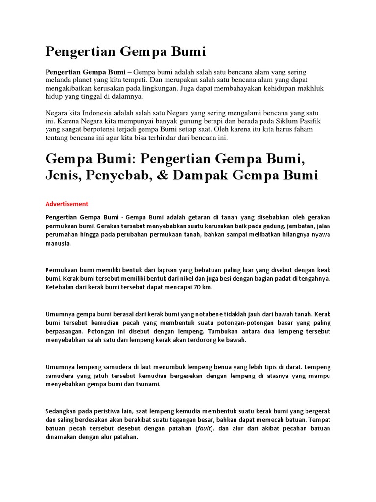 Pengertian Gempa Bumi, Penyebab, Jenis, Akibat, dan Cara …